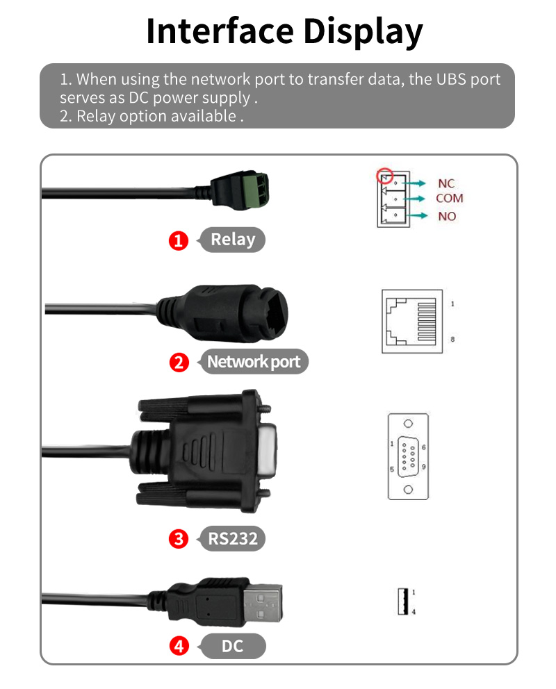 | Physical Interface | Ethernet,RS232,DC,Relay |
